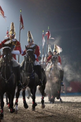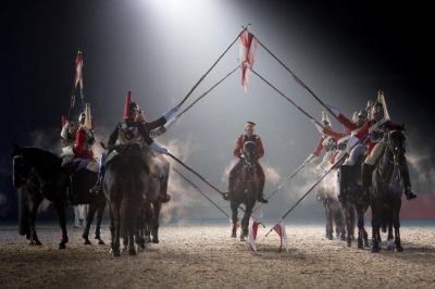 تُقدّم فرقة الخيالة الملكية البريطانية الرسمية التابعة للملكة إليزابيث، عروضاً موسيقية مميزة في أبوظبي، وذلك للمرة الأولى في منطقة الشرق الأوسط، وبالتزامن مع فعاليات المعرض الدولي للصيد والفروسية (أبوظبي 2009) الذي يُقام خلال الفترة من 30 سبتمبر الحالي ولغاية 3 أكتوبر القادم. واعرب الشيخ سلطان بن طحنون آل نهيان رئيس هيئة أبوظبي للثقافة والتراث عن ترحيبه باستضافة عروض الفروسية النادرة التي ستقدمها فرقة الخيالة الخاصة بالملكة إليزابيث ملكة بريطانيا.