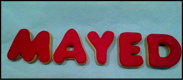طلبيتي كانت عبارة عن بسكوت بالقلوب..مشكل بحروف المعاريس وبالورود...