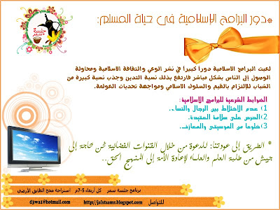 يتم طباعتها وتوزيعها في أثناء عرض البرنامج، كمآ أنه يتم اختيار لون مختلف لكل أسبوع =) }..