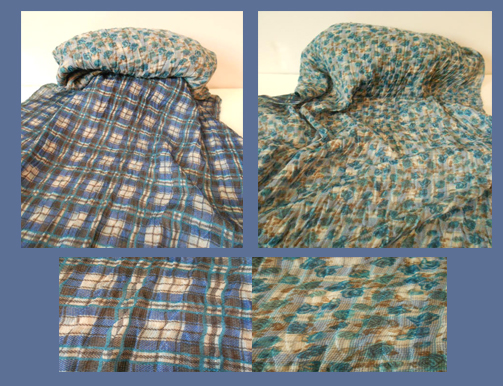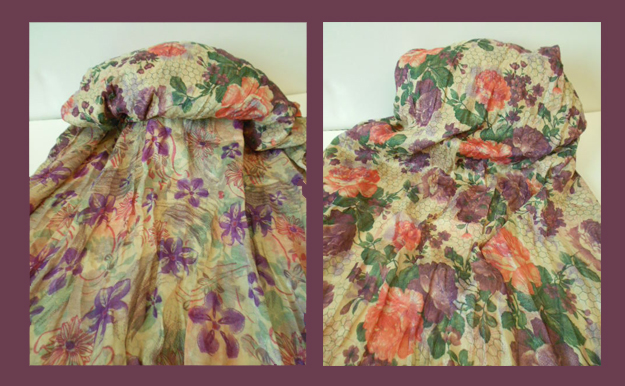 من جهة ورود صغيرة والجهة الثانية مربعات بألوان حلوة..