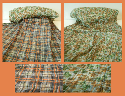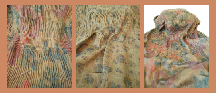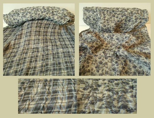 الخام فيه كسرات منه وفيه مثل ما واضح فالصور ..من جهة الورود كبيرة ومتفرقة والجهة الثانية ورود صغيرة ومتقاربة ،، يغلب عليها الألوان الغامقة اللي تعطيها فخامة ..