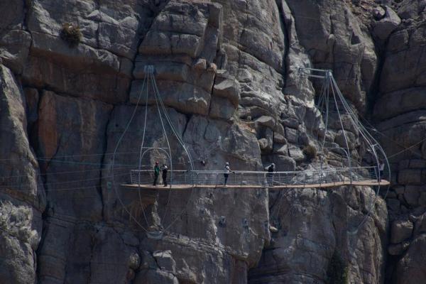 أما جولة جيس المعلقة «سكاي تور» فتمتد حالياً 4,200 متر، عبر سلسلة من 6 مسارات انزلاقية، تبلغ سرعتها في المتوسط 60 كيلومتراً في الساعة. ويشق المشاركون طريقهم عبر السماء للوصول إلى الجسر المعلق، الذي يمتد 15 متراً، ويعد الأعلى في الإمارات، مع ارتفاعه 1250 متراً عن سطح البحر، و300 متر عن سطح الأرض.